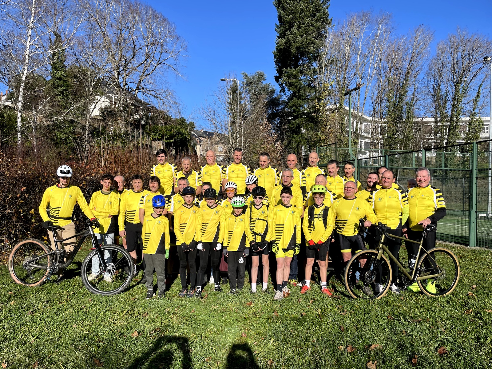 La nouvelle tenue du club pour la saison 2026 - Une photo de famille ou les cyclistes se sont parés de leur tenue VTT ou vélo de route.